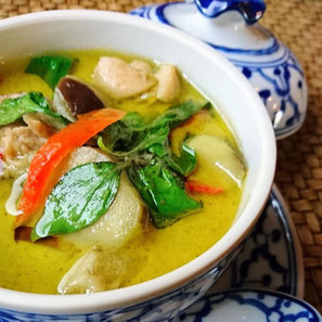 大人気!「グリンカレー(ゲーンキアオワーン)」をサイドメニューとデザート付きのセットで。